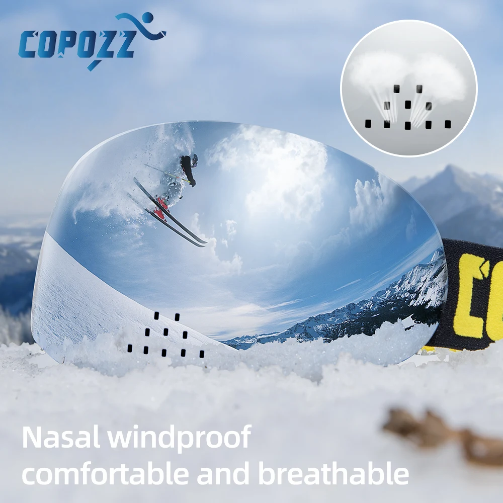 COPOZZ professional ski goggles double layers uv400 Protection Anti-fog nasal wingproof ski glasses