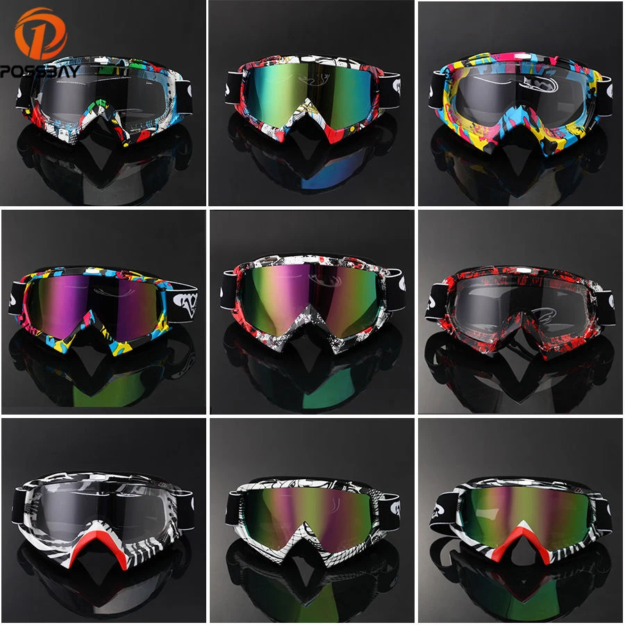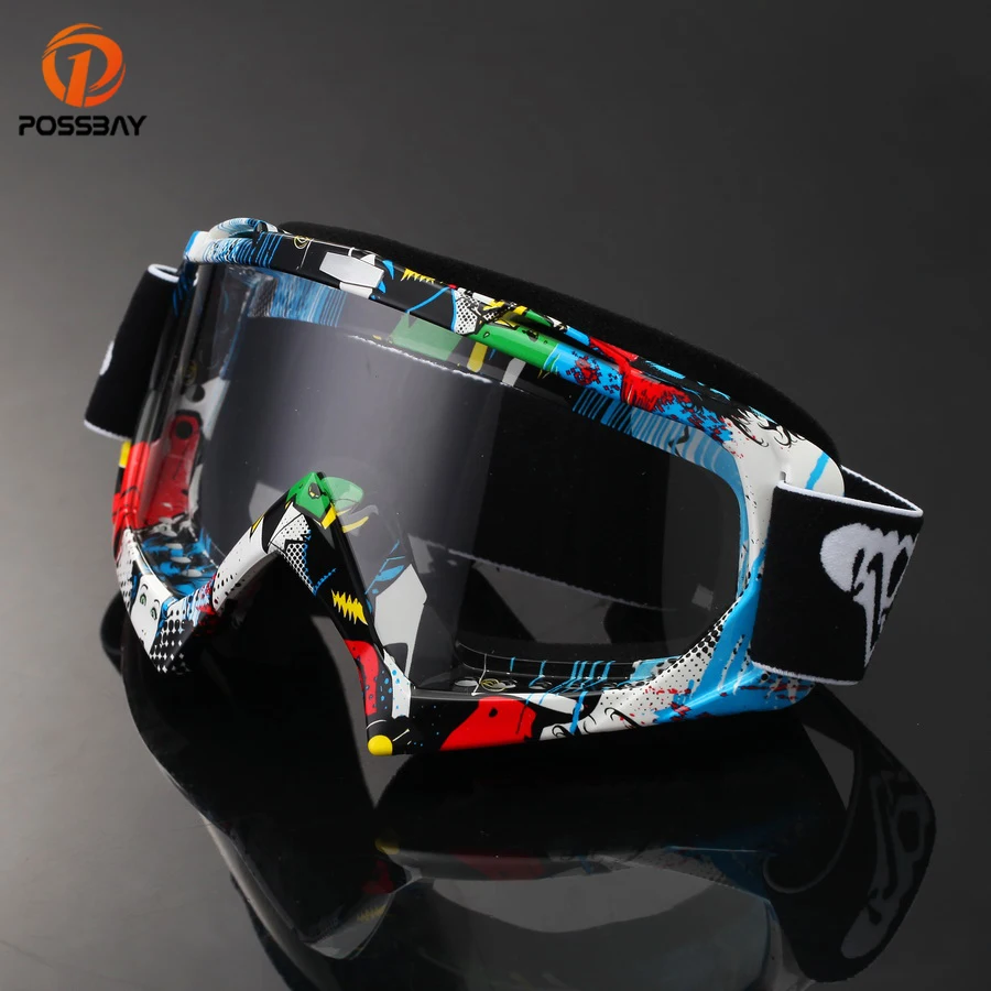 POSSBAY Motorcycle Motocross Goggles Glasses Vintage Cycling Snowboard Eyewear Helmet Ski Sport for